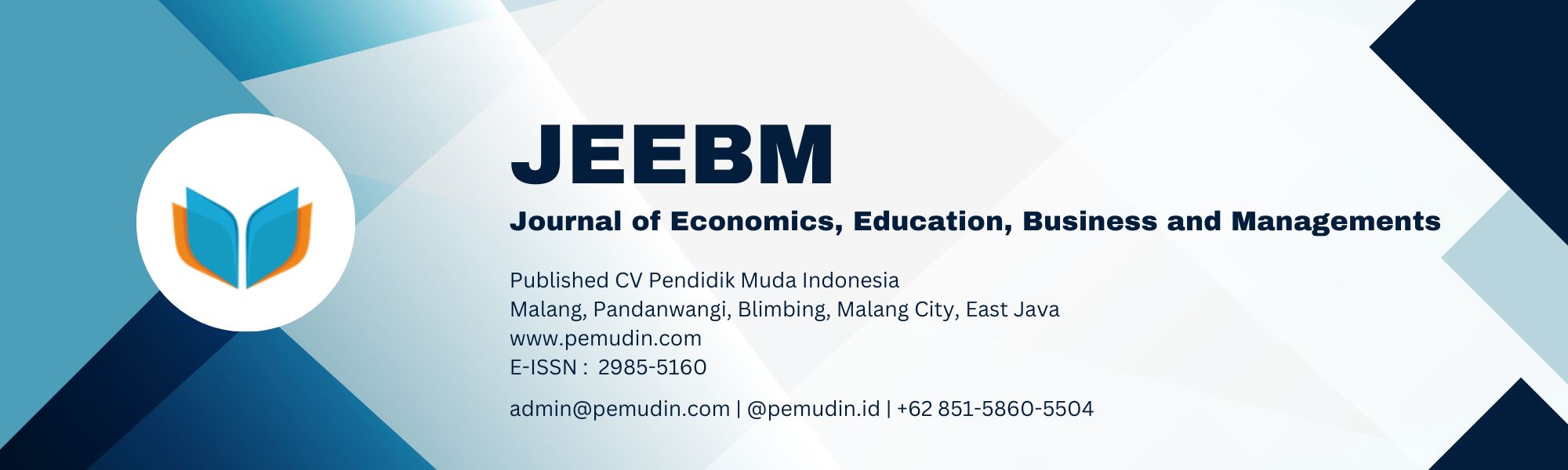 Journal of Economics, Education, Business and Managements (JEEBM) is an academic journal published four times a year, in July, August, November, and December, by CV Pendidik Muda Indonesia. This electronic journal provides a scholarly platform for researchers, academics, teachers, students, practitioners, and the general public to publish scientific articles in the fields of economics, education, business, and management.